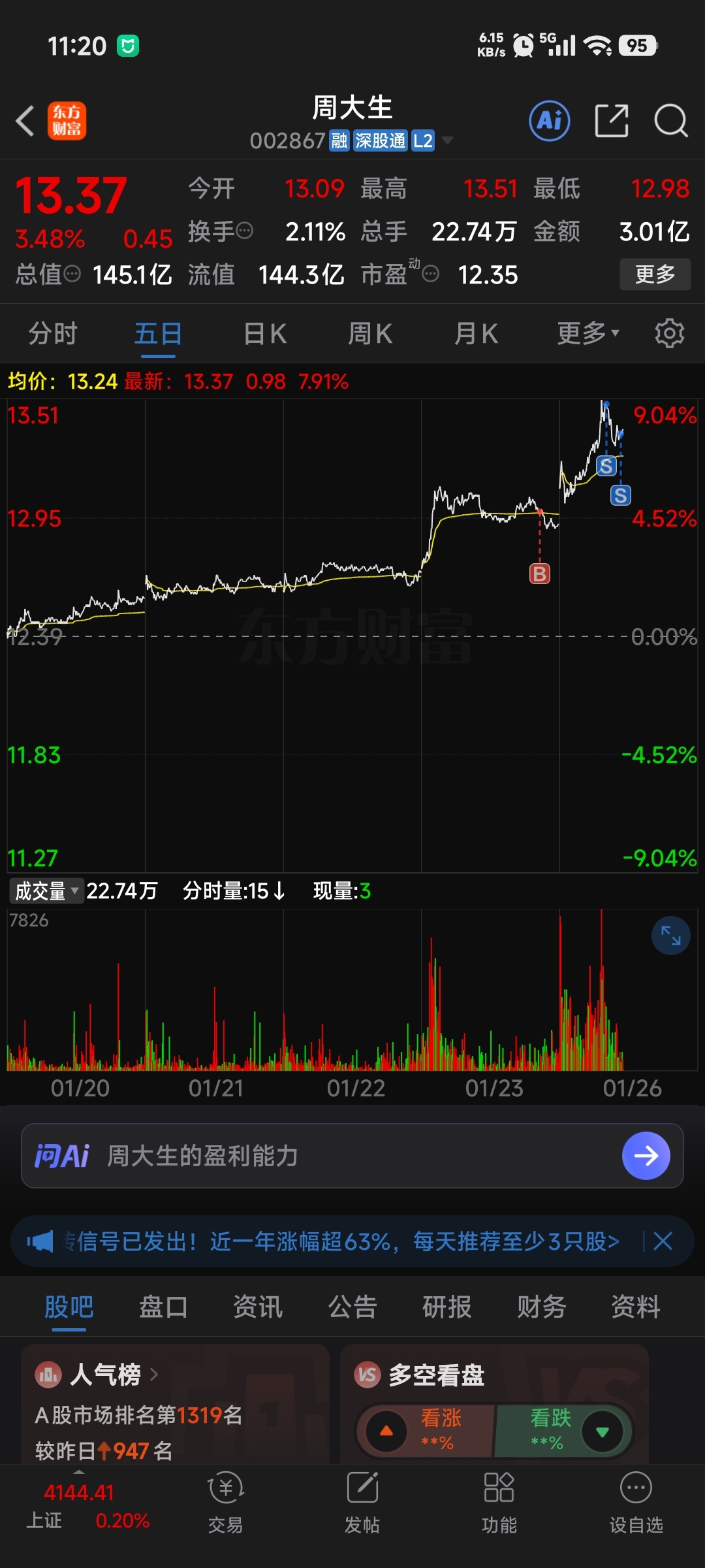 温馨提示: 1.根据《证券法》规定,禁止编造、传播虚假信息或者误导性信息,扰乱证券市场;2.用户在本社区发表的所有资料、言论等仅代表个人观点,与本网站立场无关,不对您构成任何投资建议。用户应基于自己的独立判断,自行决定证券投资并承担相应风险。《东方财富社区管理规定》