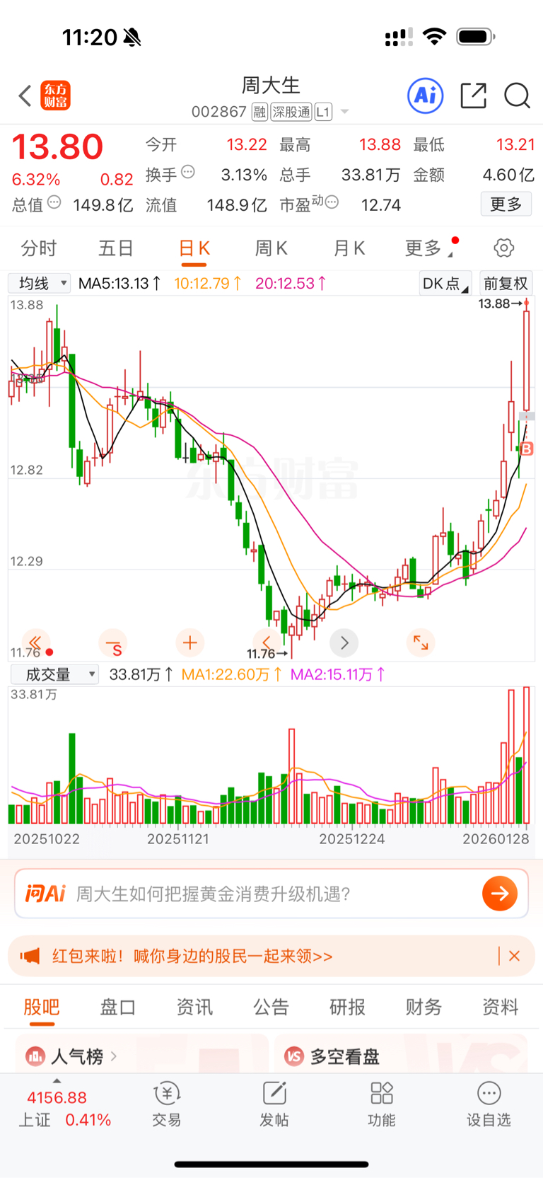 $周大生(SZ002867)$ 晚一秒我都买不到这个价格