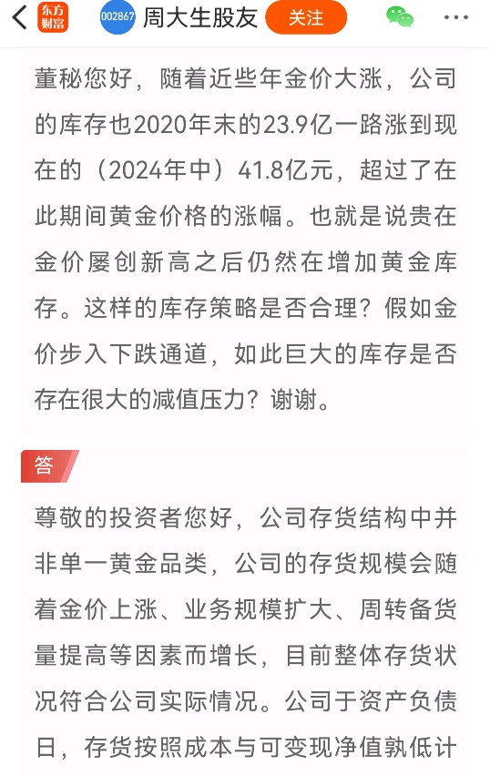 周大生的库存货黄金,比四川黄金的金矿储量还多