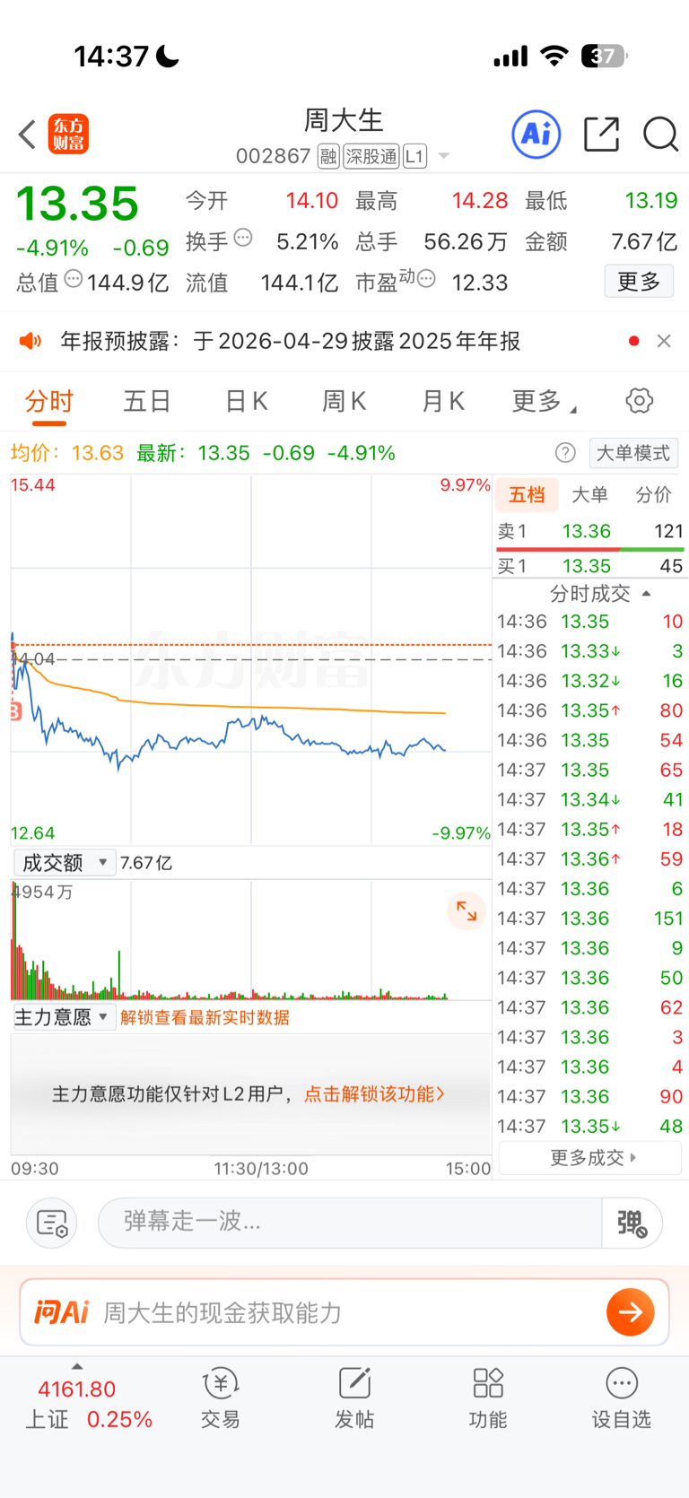 $周大生(SZ002867)$ 天塌了