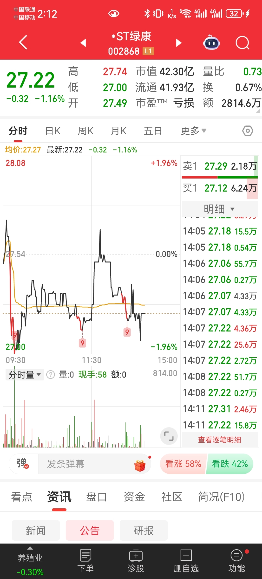 $*ST绿康(SZ002868)$ 主力,你立了一天的中指累不累啊!有本事按死跌停。