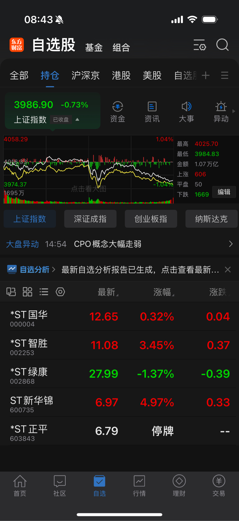 我拿的五个st都起飞了了四个了就差你绿康了对你抱有厚望给我站起来今天拉个直线涨停
