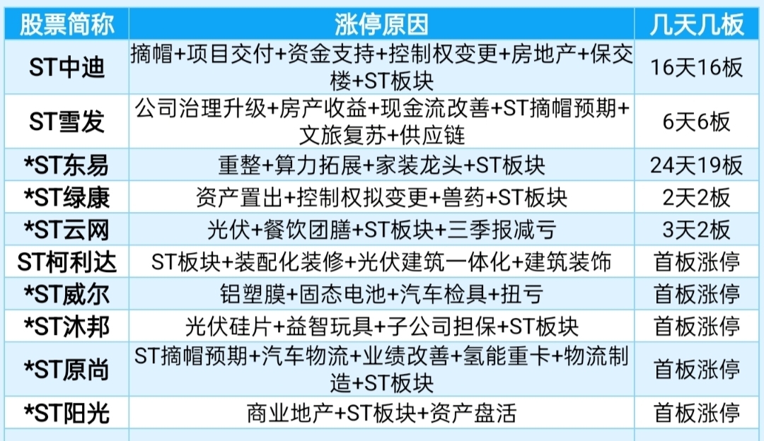 $*ST绿康(SZ002868)$ $*ST云网(SZ002306)$ $ST柯利达(SH603828)$ ST封板情况跟踪,插图中【数据】仅供参考,不构成操作建议。