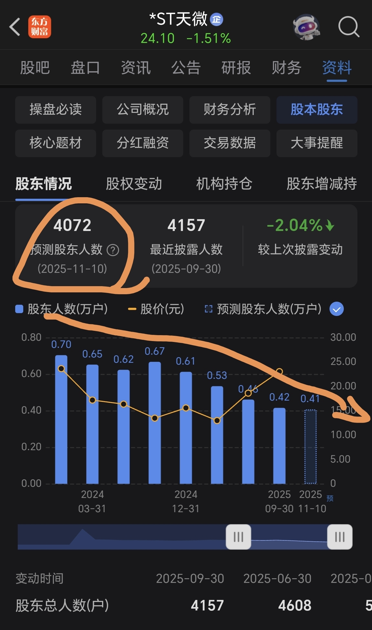 ST天微:假ST军工股!股东人数只有4000(ST个股中人数最少)十大股东占比6