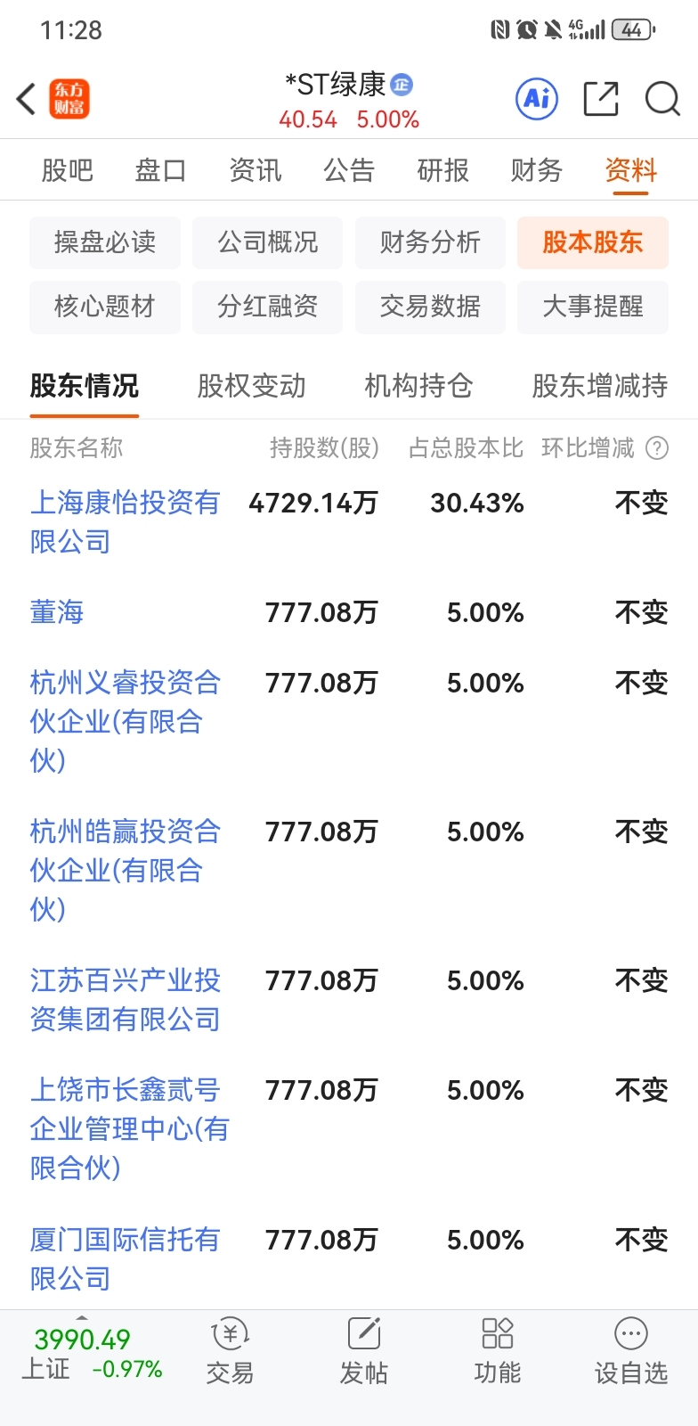 玩St没有持有或者关联绿康的,都不是顶级玩家!前十大65%,另外%20以上被大户