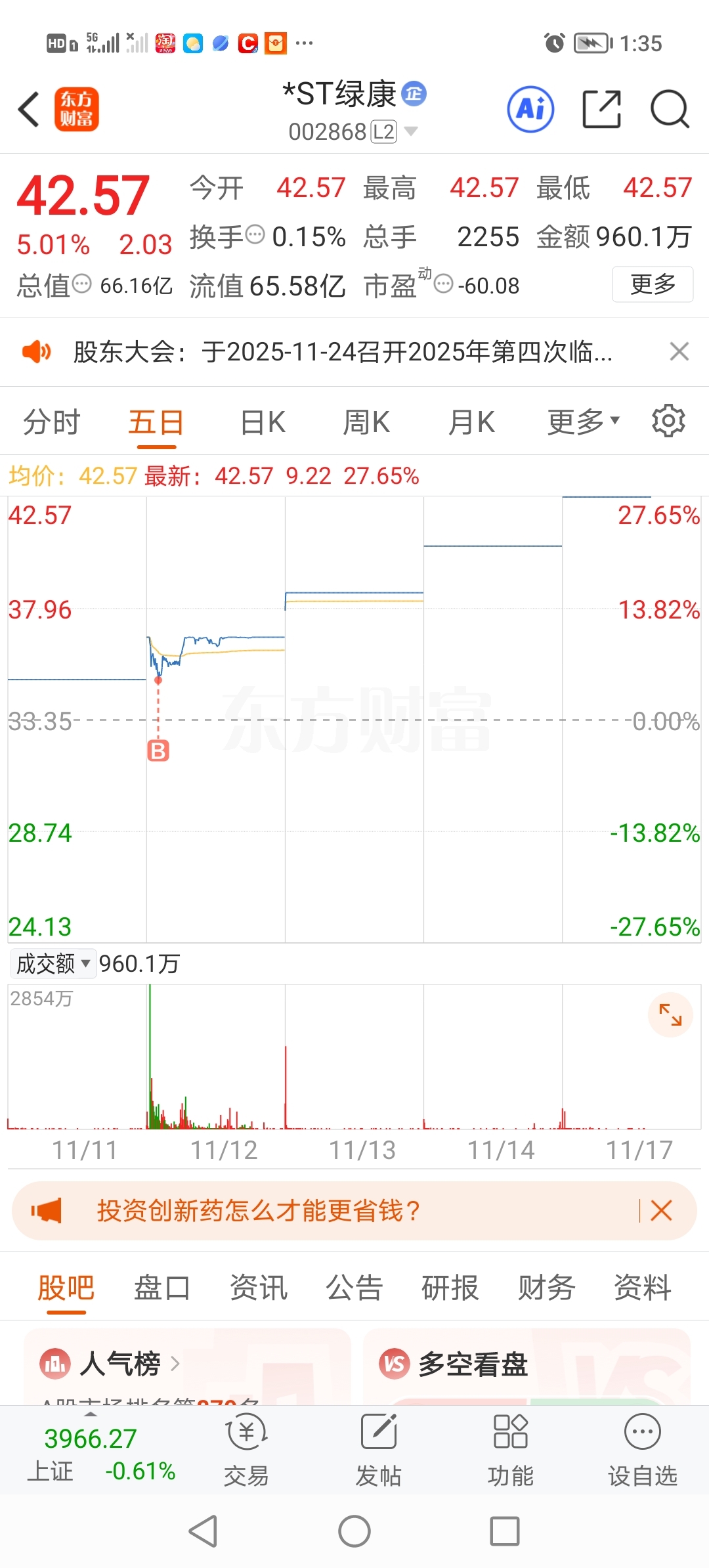 $*ST绿康(SZ002868)$ 这一手买的真难受