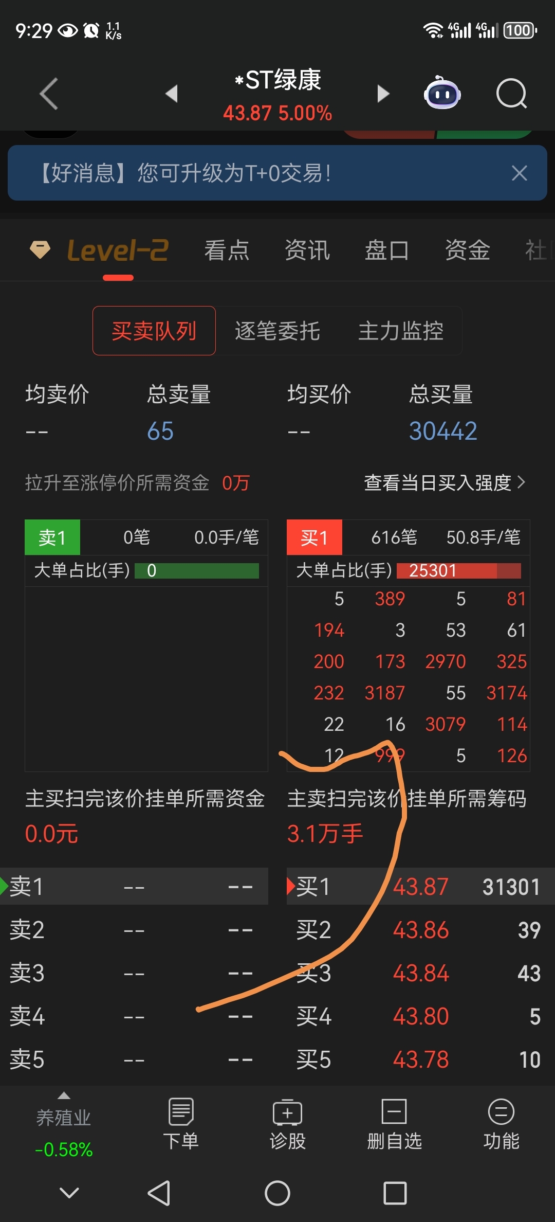 $*ST绿康(SZ002868)$ 大单堵门今天不用排了,散了散了