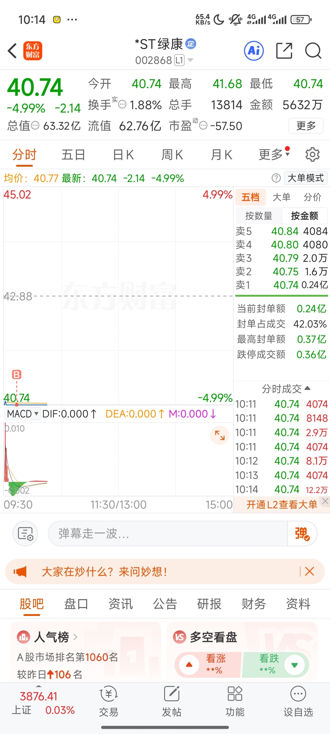 $*ST绿康(SZ002868)$ 睡觉睡觉