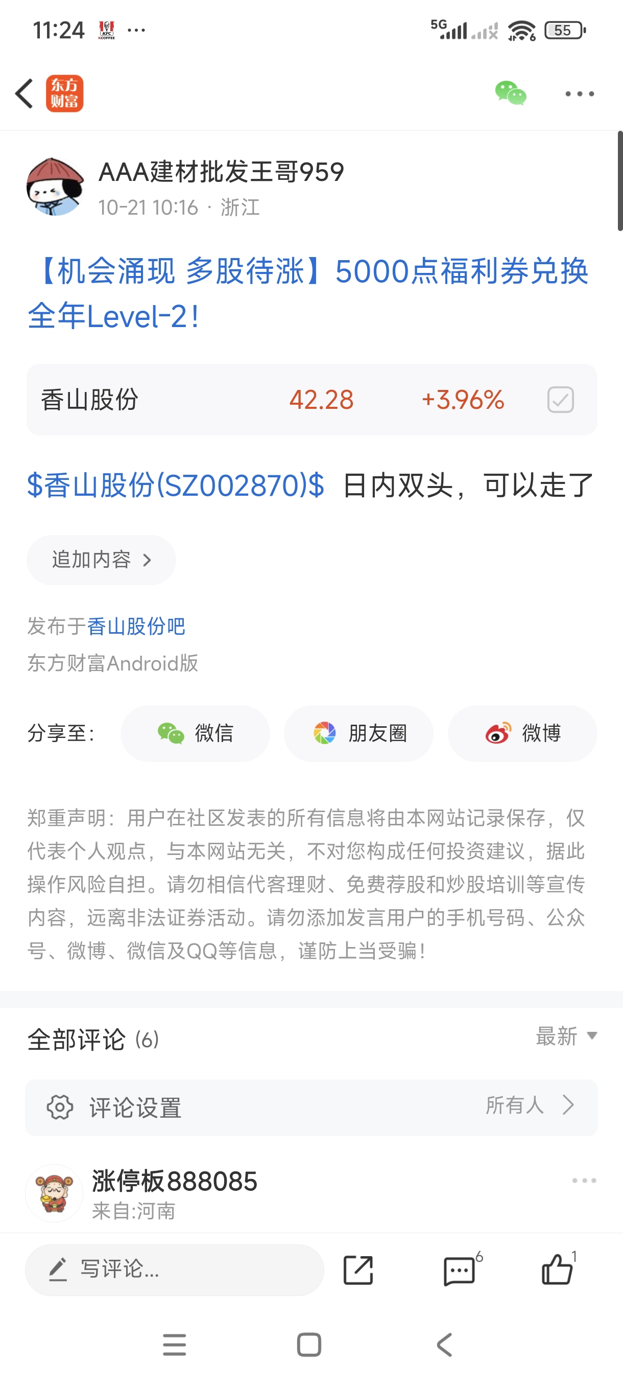 $香山股份(SZ002870)$ 早上说日内双头可以走了,全在骂我。现在呢??我今天五个点走了,不贪心。只是气不过,好心提醒其他人走反而被骂