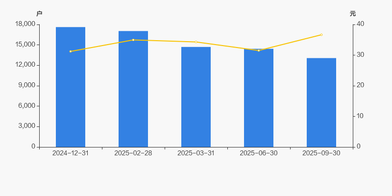 自2024年12月31日以来,公司股东户数连续4期下降,截至目前减幅为25.85%。2024年12月31日至2025年9月30日区间股价上涨17.43%。