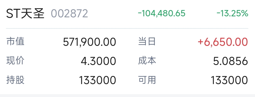 $ST天圣(SZ002872)$ 哈哈,孩儿们离回本又近了一步,目标20元