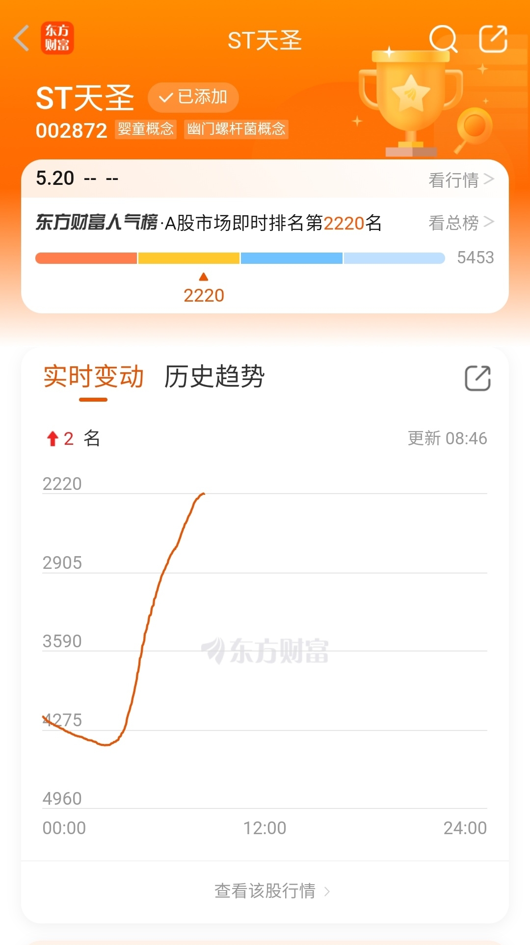 人气暴增2000名,飙升榜第一名,证明全盯着的,都等着抄底。
