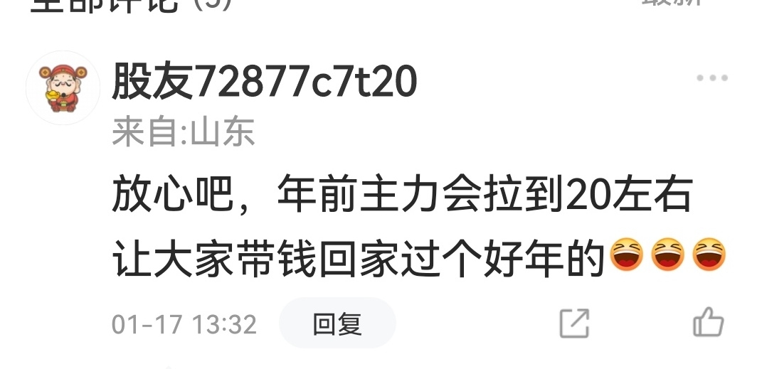 $ST天圣(SZ002872)$ 这货明摆就是拖,脑子都没带就在那里忽悠唱多,唱多之前不先用计算器按一按,到过年之前还剩下多少个交易日,就算连续涨停板能不能到20元,都懒得去算,所以套死也不可怜