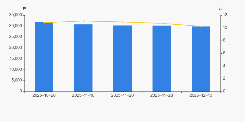 自2025年10月20日以来,公司股东户数连续4期下降,截至目前减幅为6.40%。2025年10月20日至2025年12月10日区间股价下降5.17%。