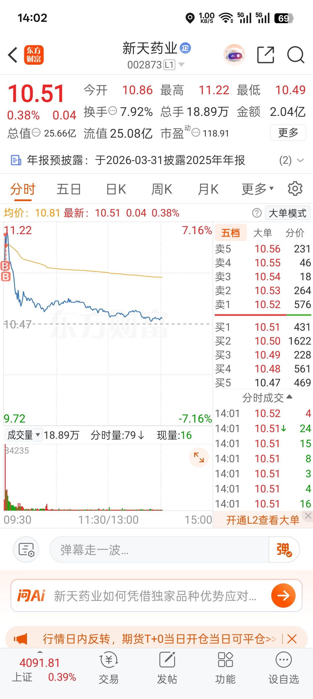 $新天药业(SZ002873)$ 大早上就被