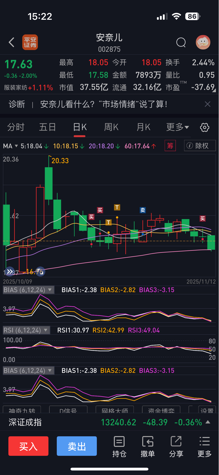 $安奈儿(SZ002875)$ 哈哈不好搞,这个月的指数大涨与我无关,每次下跌还要我平滩……跟着股市混三天饿九顿,还要动不动就要挨上一铁棍……努力做T不够今天亏