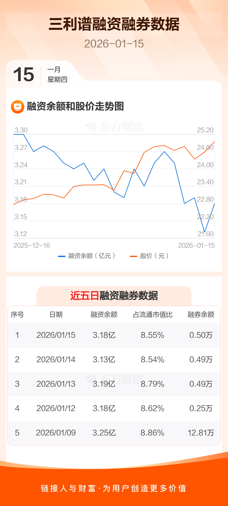 交易所最新数据显示,三利谱于2026年1月15日获融资买入1423.68万元,融资偿还943.64万元,当日融资净买入480.04万元。目前,该股融资余额3.18亿,占流通市值比例为8.55%。