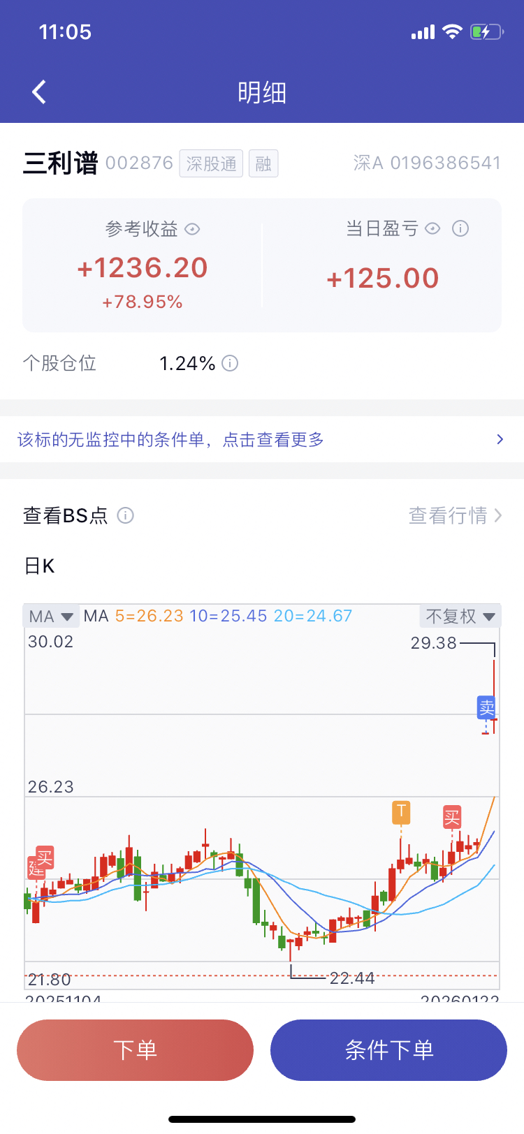$三利谱(SZ002876)$ 昨天板上减仓1手,今天继续减仓1手,剩1手格局