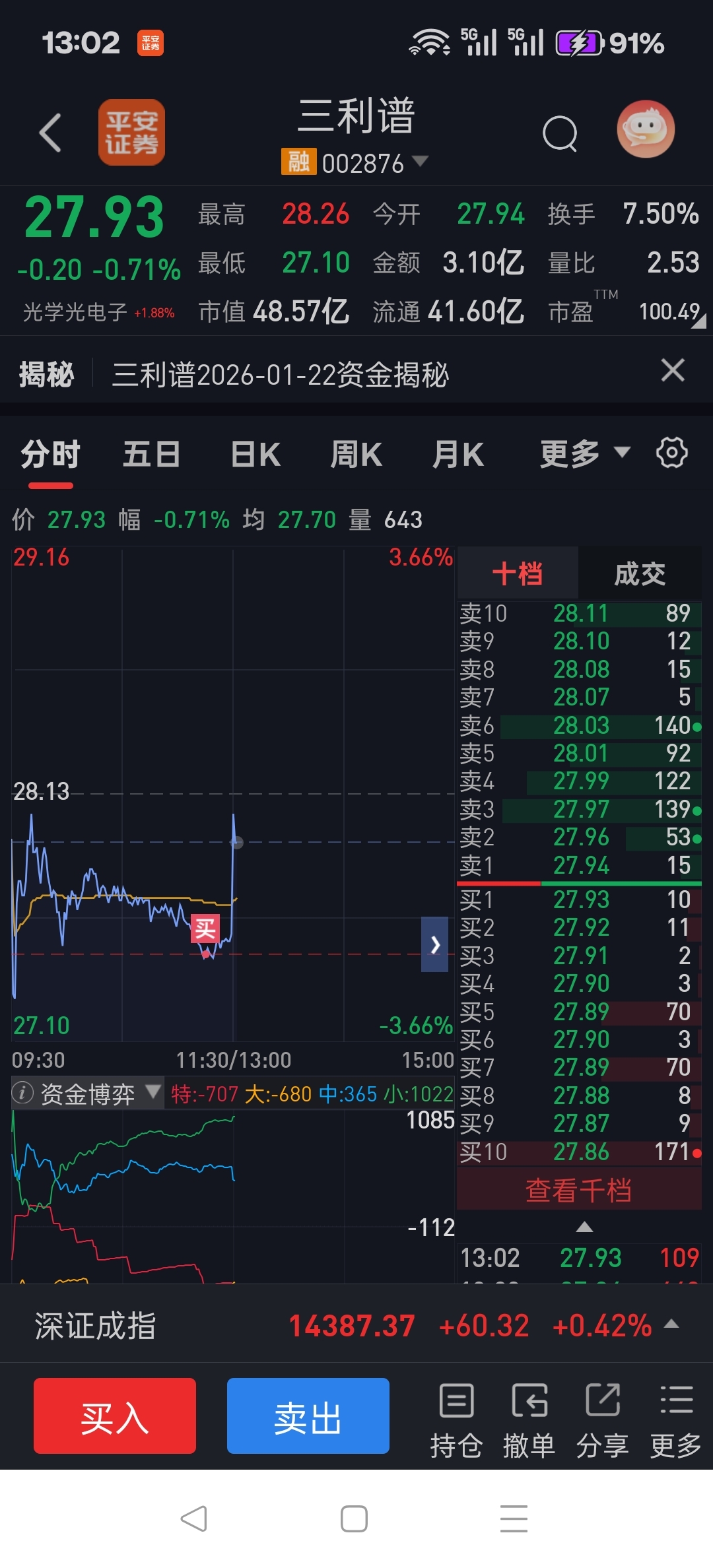 $三利谱(SZ002876)$ 早上没加到,中午加了