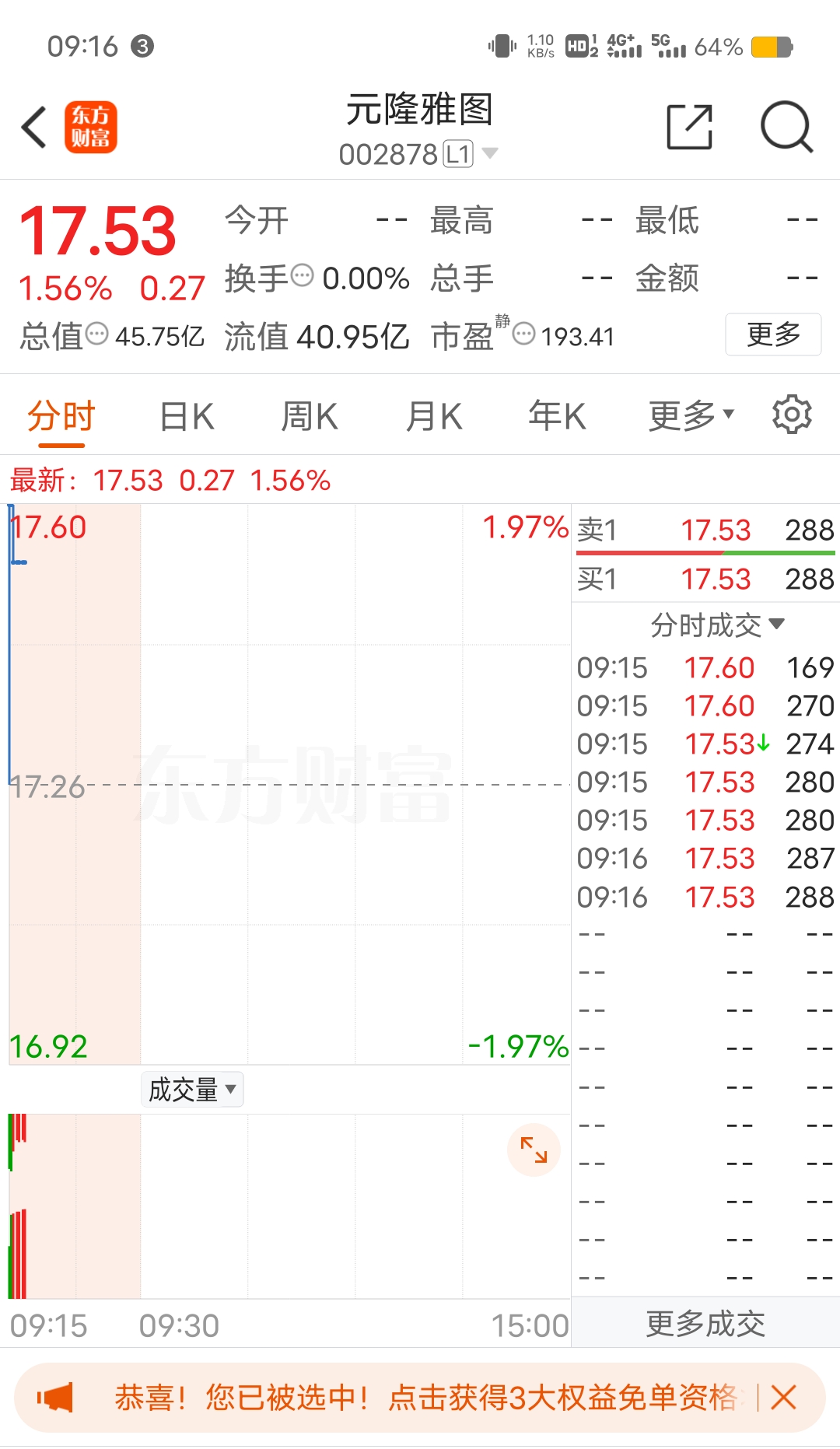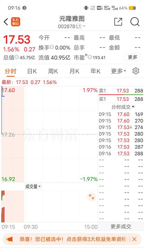 $元隆雅图(SZ002878)$ 九点十五分至九点二十分,这段时间,分时成交显示有多笔成交记录,我的问题是,散户这五分钟提交的单真的可能成交吗
