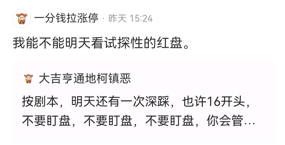 温馨提示: 1.根据《证券法》规定,禁止编造、传播虚假信息或者误导性信息,扰乱证券市场;2.用户在本社区发表的所有资料、言论等仅代表个人观点,与本网站立场无关,不对您构成任何投资建议。用户应基于自己的独立判断,自行决定证券投资并承担相应风险。《东方财富社区管理规定》