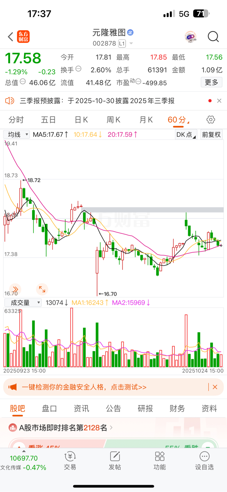 $元隆雅图(SZ002878)$ 不是吓唬你们,下周有得跌,幸亏今天跑了