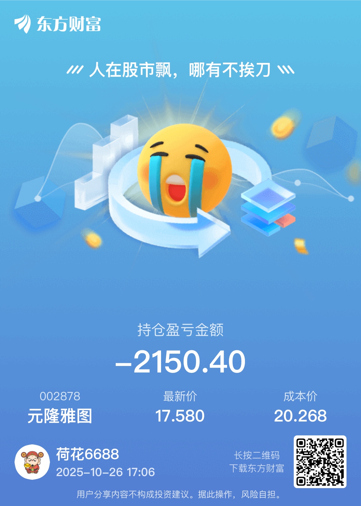 温馨提示: 1.根据《证券法》规定,禁止编造、传播虚假信息或者误导性信息,扰乱证券市场;2.用户在本社区发表的所有资料、言论等仅代表个人观点,与本网站立场无关,不对您构成任何投资建议。用户应基于自己的独立判断,自行决定证券投资并承担相应风险。《东方财富社区管理规定》