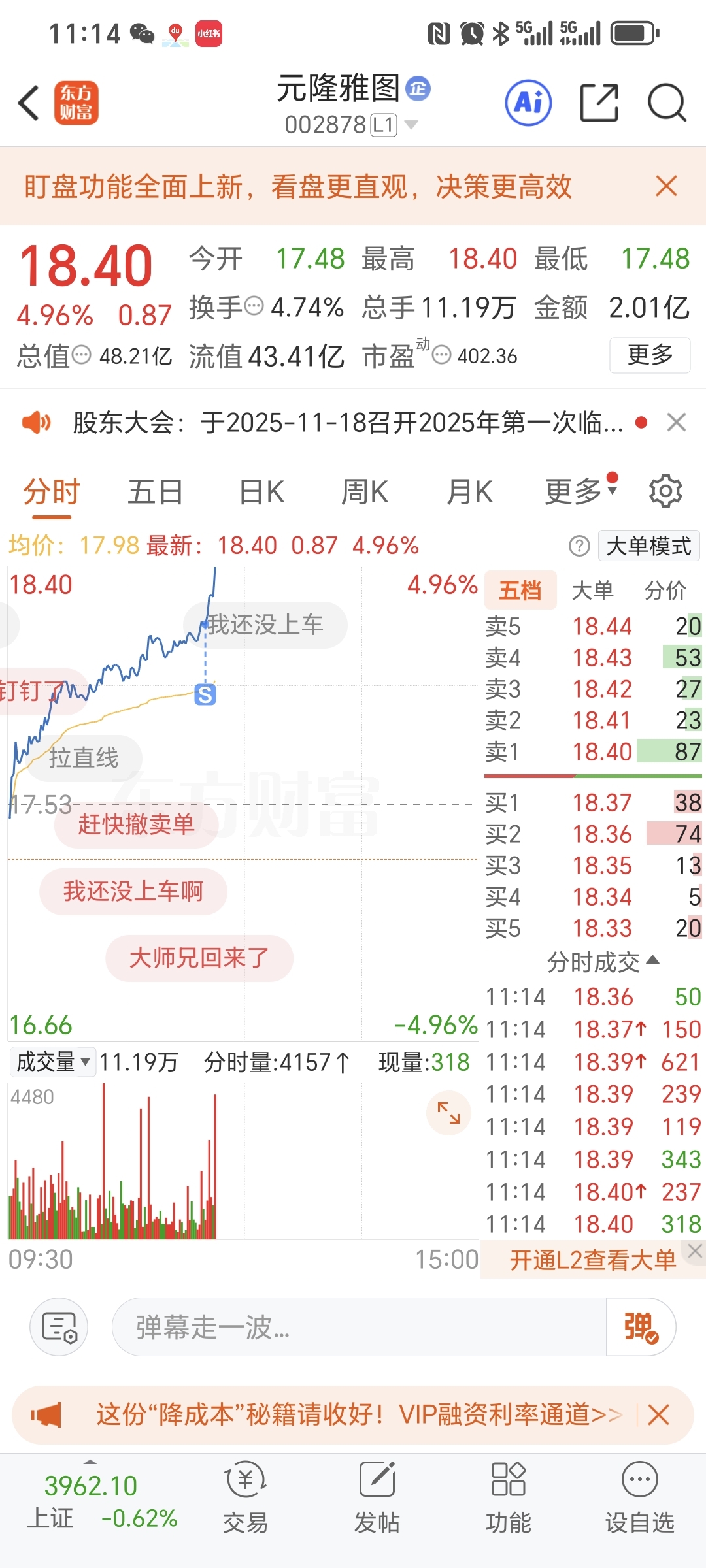 $元隆雅图(SZ002878)$ 每次都卖在关键位置