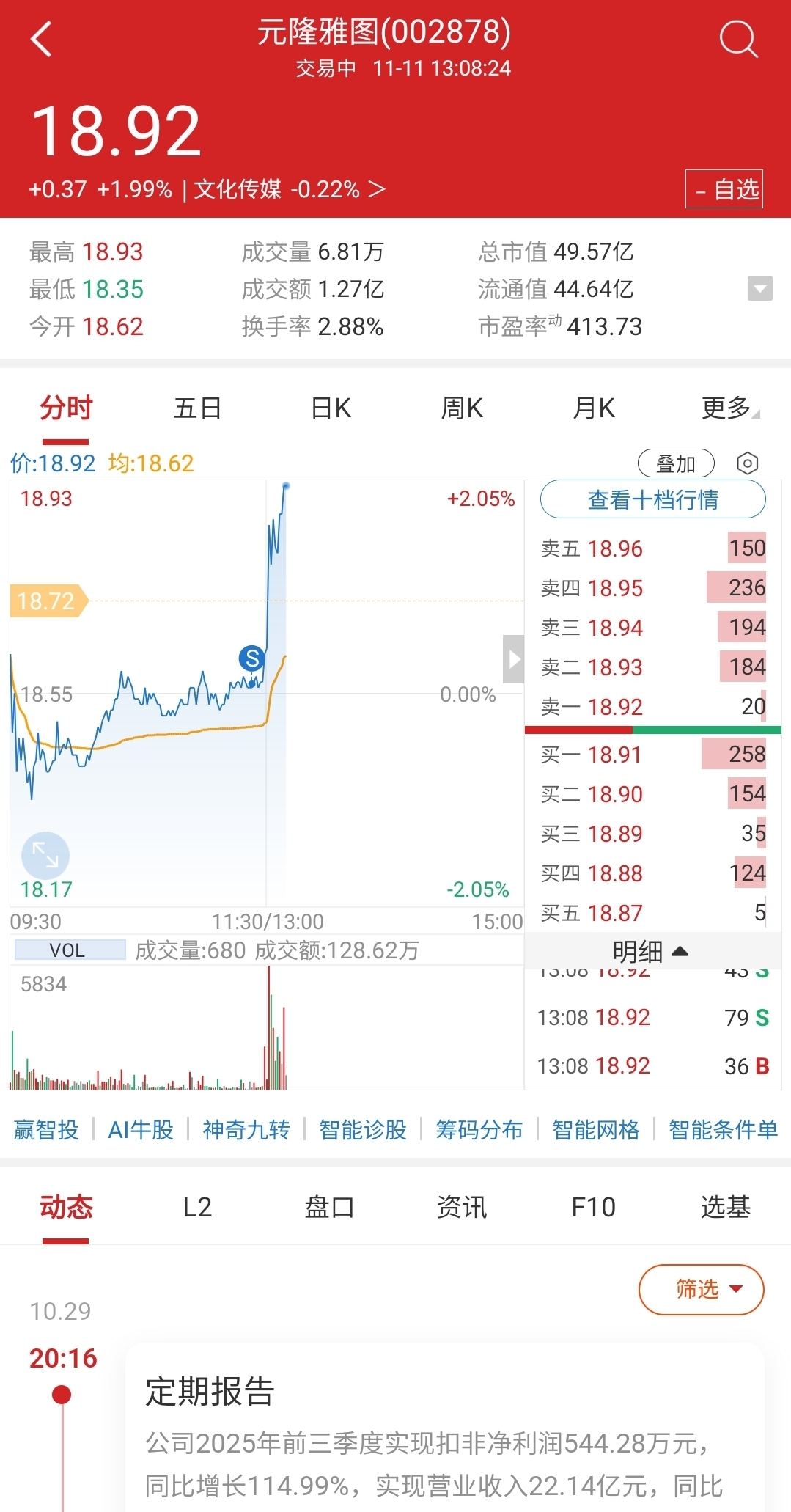 $元隆雅图(SZ002878)$ 各位,是不是要感谢我,因为我一卖就涨