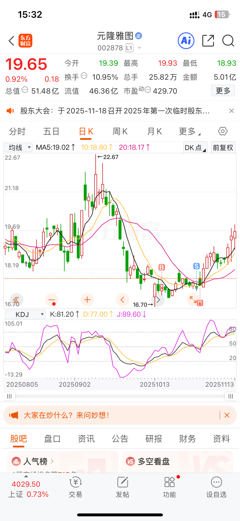 我在建了一个底仓,没想到都赚了10个点了。我希望回调到17块,这点钱我看不上