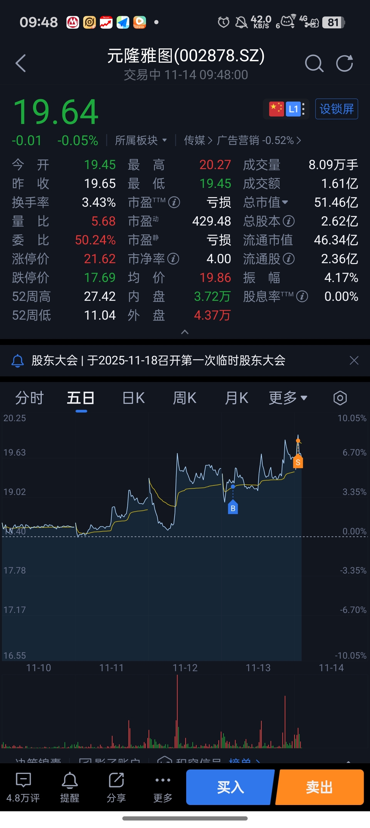 $元隆雅图(SZ002878)$ 今天27卖的,尾盘不破19我依然周一看机会大于风险