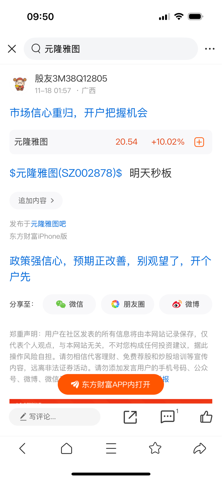 温馨提示: 1.根据《证券法》规定,禁止编造、传播虚假信息或者误导性信息,扰乱证券市场;2.用户在本社区发表的所有资料、言论等仅代表个人观点,与本网站立场无关,不对您构成任何投资建议。用户应基于自己的独立判断,自行决定证券投资并承担相应风险。《东方财富社区管理规定》