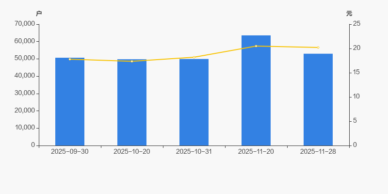 2025年9月30日至今,公司股东户数有所增长,区间涨幅为4.57%。2025年9月30日至2025年11月28日区间股价上涨13.60%。