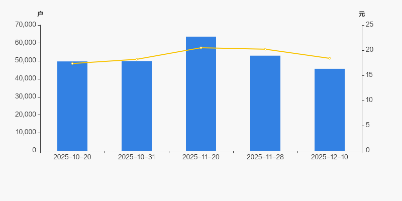 2025年10月20日至今,公司股东户数有所下降,区间跌幅为8.28%。2025年10月20日至2025年12月10日区间股价上涨5.93%。