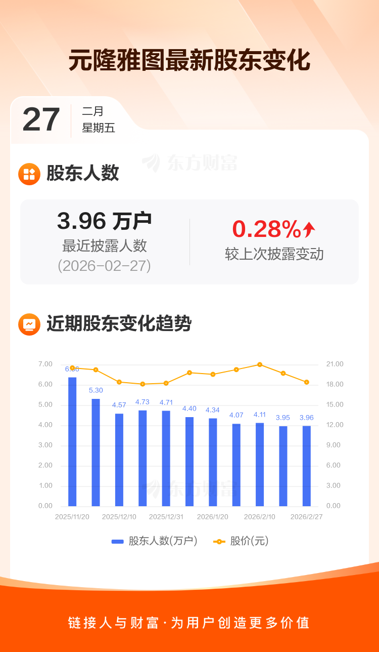元隆雅图:截至2月27日最新股东户数3.96万户,较上期增加0.28%