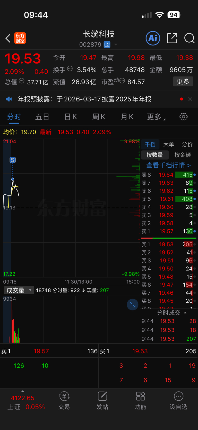 $长缆科技(SZ002879)$ 我走了 主力 可以涨停了