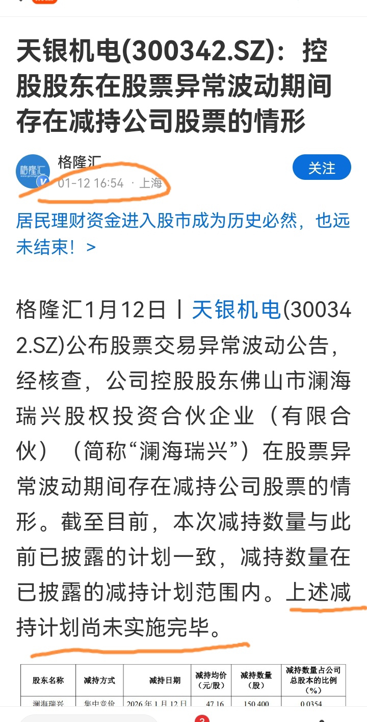 与“天银机电”根本没法比:300342在12日公告控股股东减持,当天涨停,本周维