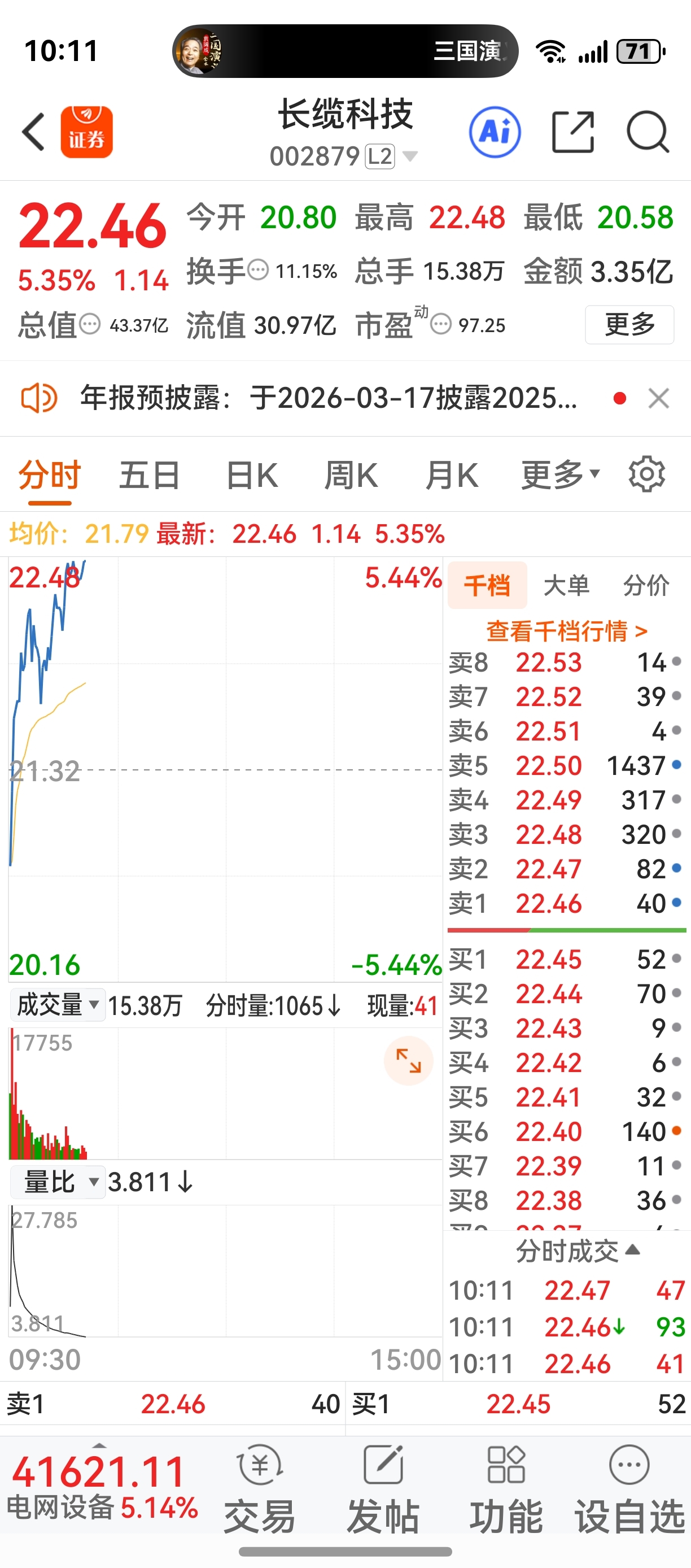 $长缆科技(SZ002879)$ 格局不大,走半!