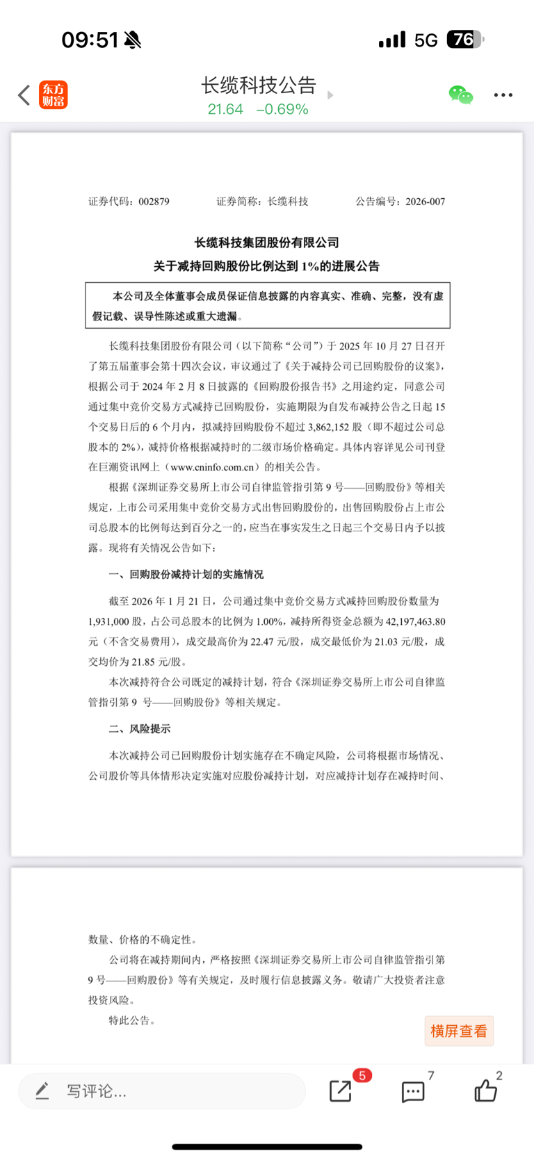 $长缆科技(SZ002879)$ 昨天减持砸盘