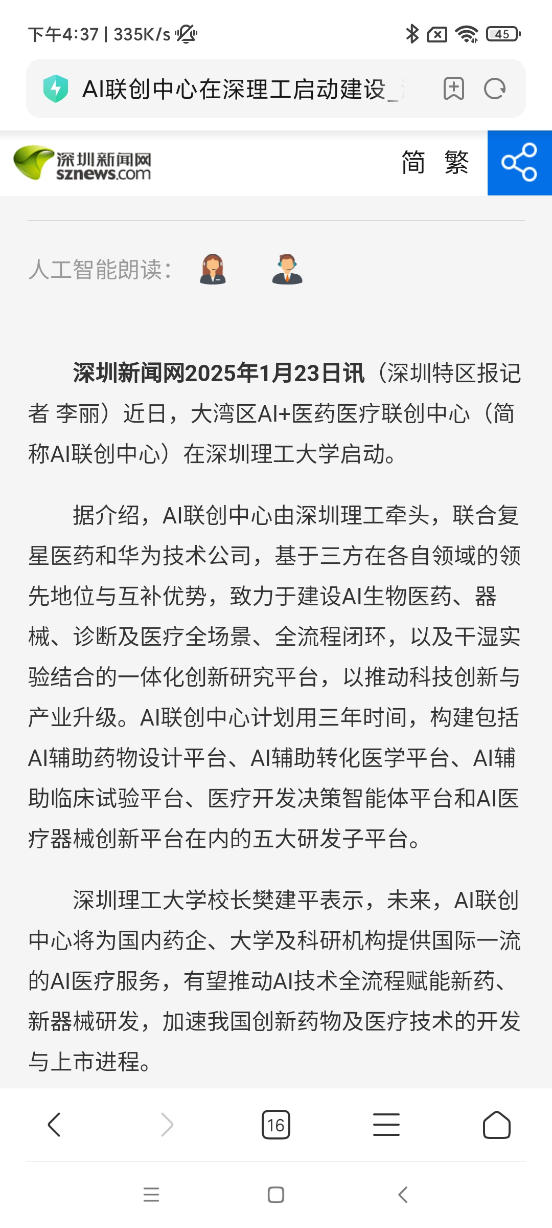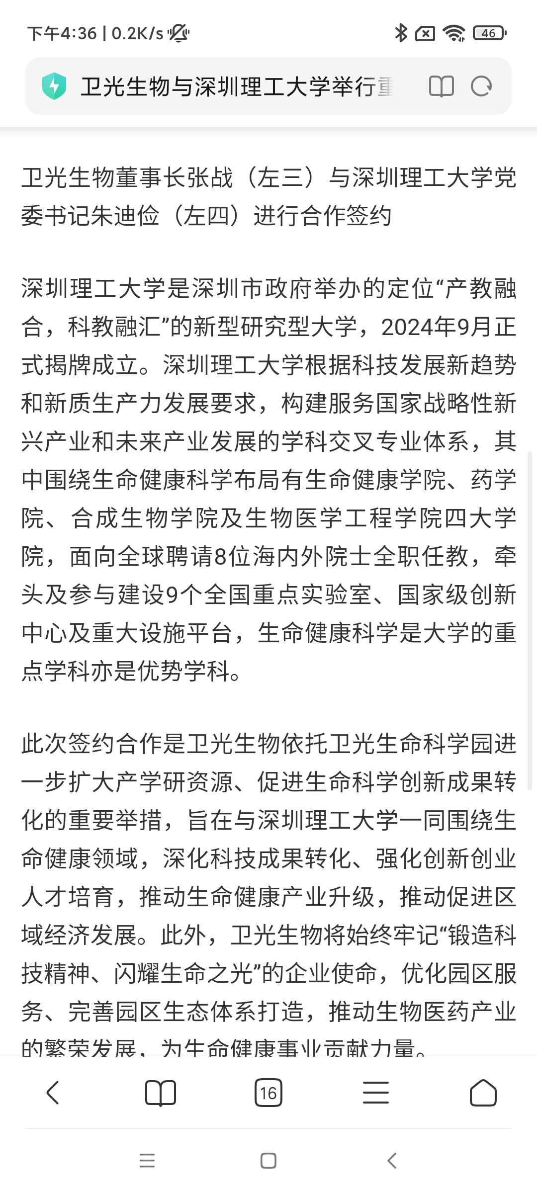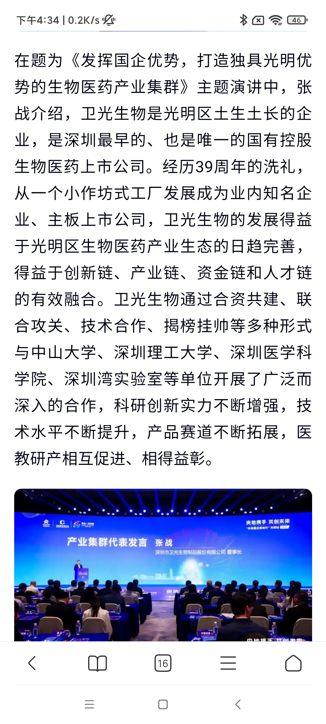 华为和光明科学城有合作,华为和深圳理工有合作,卫光生物和深圳理工有战略签约,卫光生命科学园到光明科学城只需要1.8公里,强烈建议光明区政府牵头让华为、深圳理工、科学城和其它药企的合作项目入驻卫光生命科学园,实现AI医疗的强强联合,让光明区GREAT AGAIN