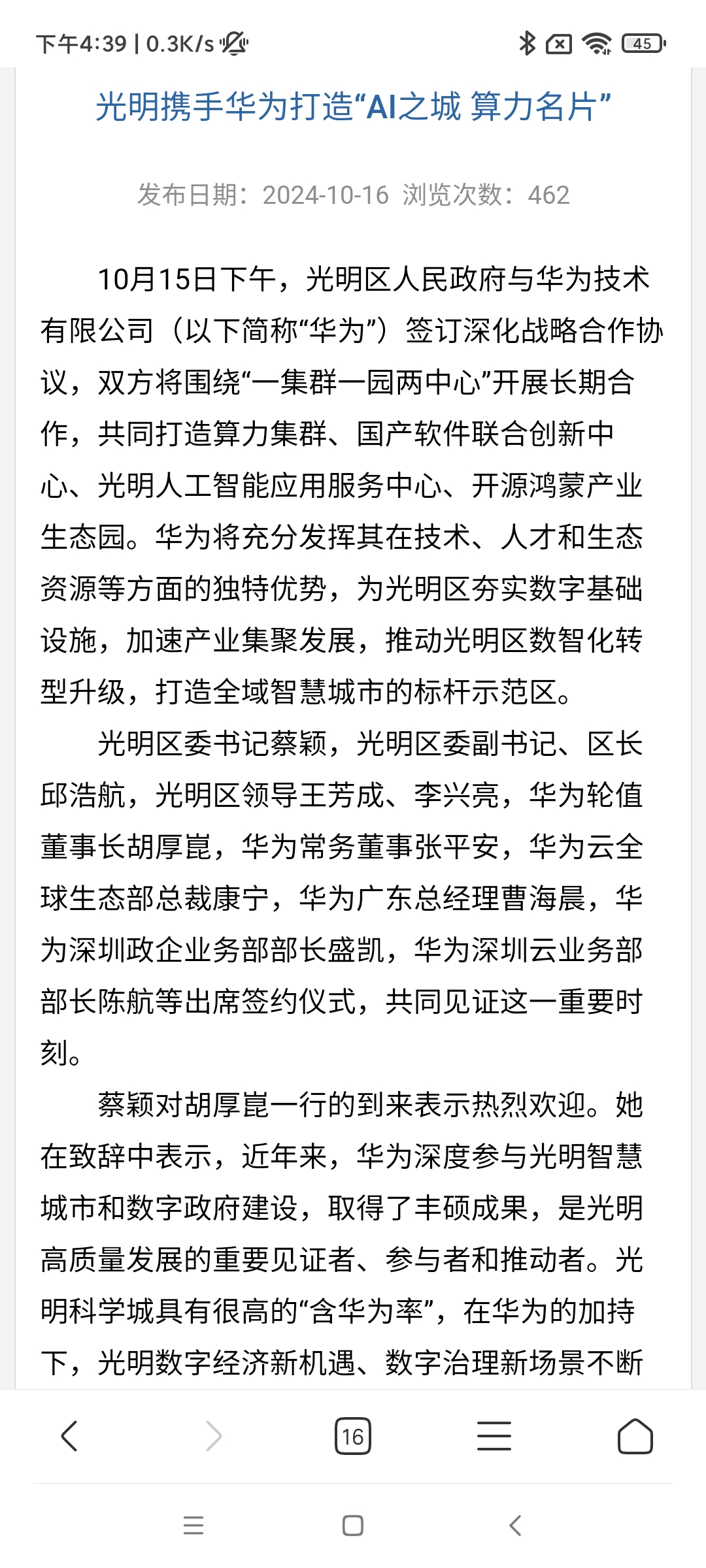 豆包报告:[笑哭][笑哭][笑哭] 目前光明区人民政府与华为技术有限公司签订的深