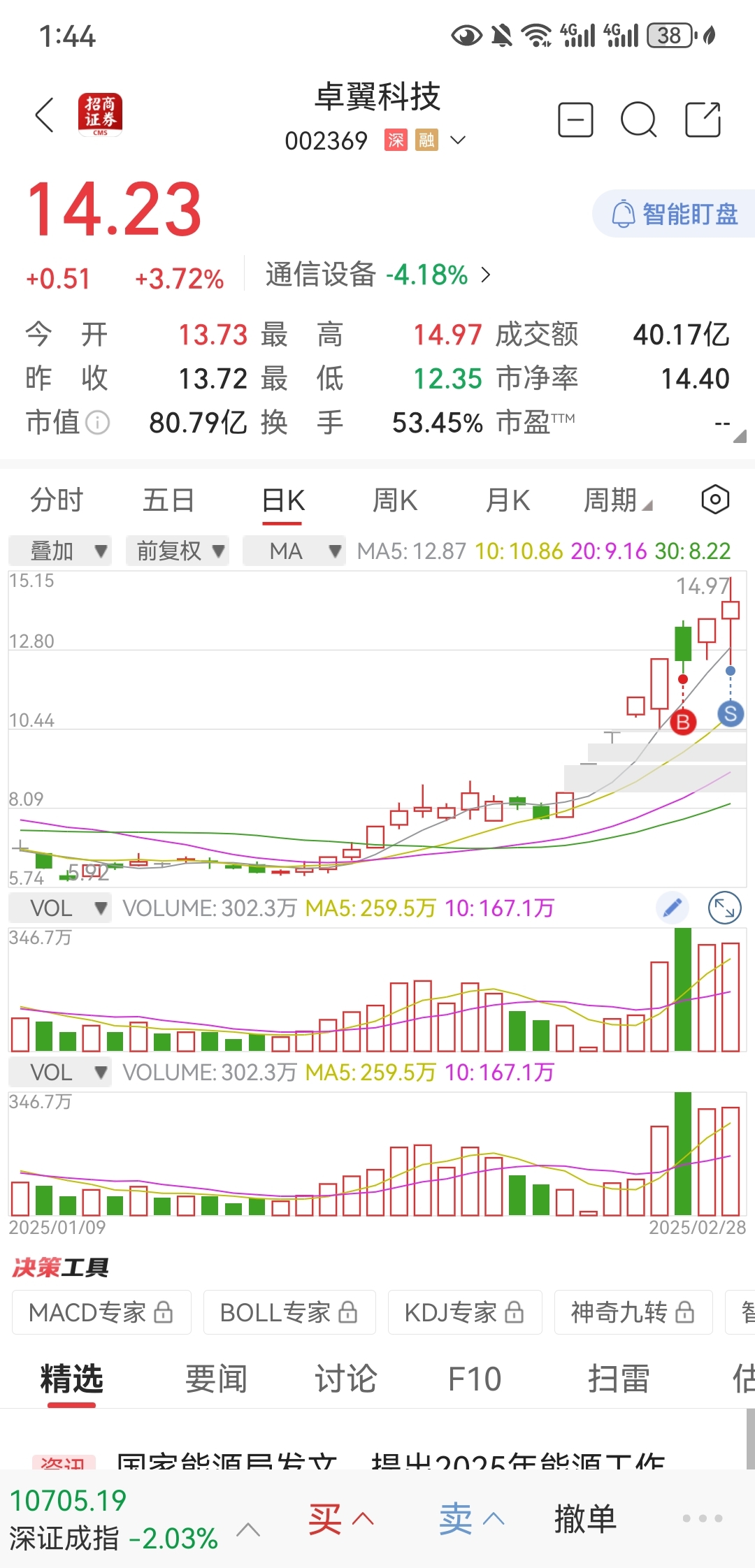 卓翼+3.7止盈,这个卖点不咋滴。