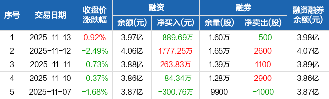 美格智能:融资净偿还889.69万元,融资余额3.97亿元(11-13)
