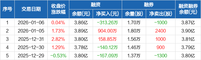 美格智能:融资净偿还313.26万元,融资余额3.86亿元(01-06)