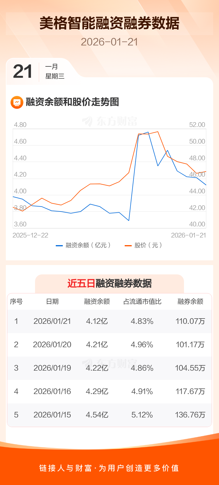 交易所最新数据显示,美格智能于2026年1月21日获融资买入2665.61万元,融资偿还3580.39万元,当日融资净偿还914.78万元。目前,该股融资余额4.12亿,占流通市值比例为4.83%。