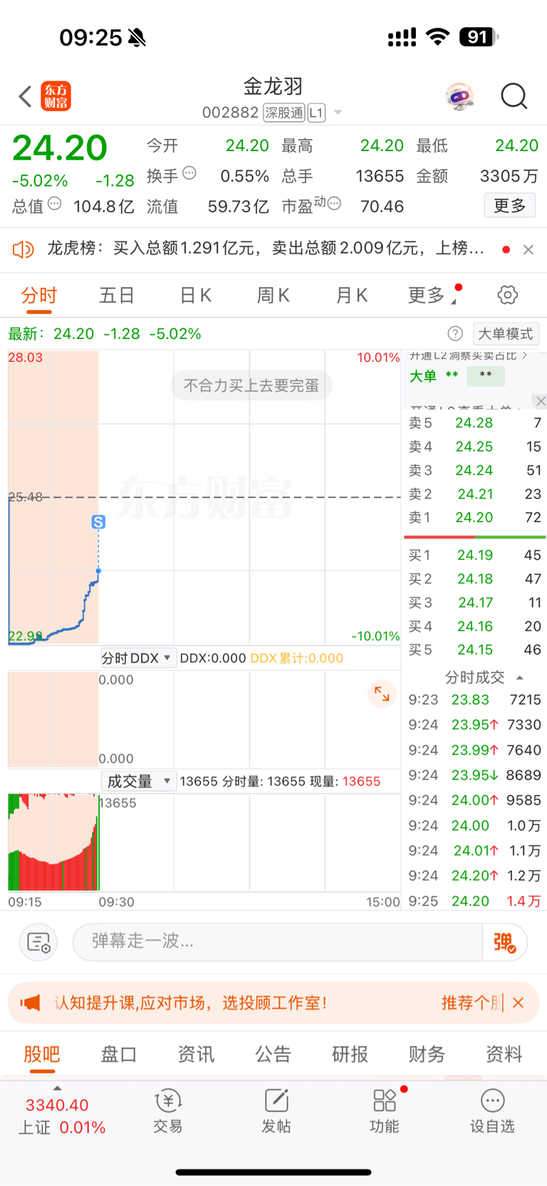 $金龙羽(SZ002882)$ 挂跌停价跑了