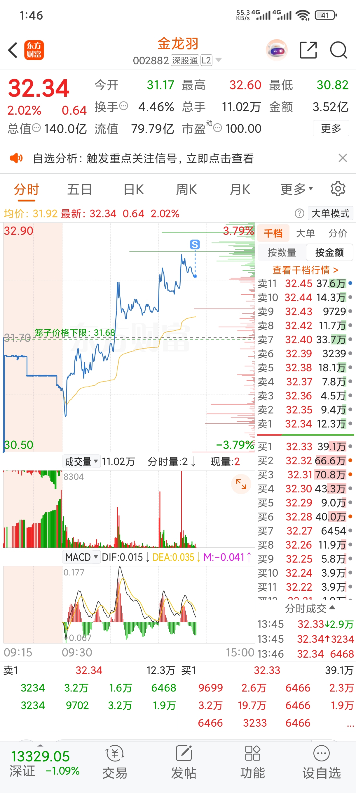 $金龙羽(SZ002882)$ 十月29号买入,11月14号卖出,总盈利2.3个,太磨叽了这支股,你可以涨了,就等我这点筹码了。