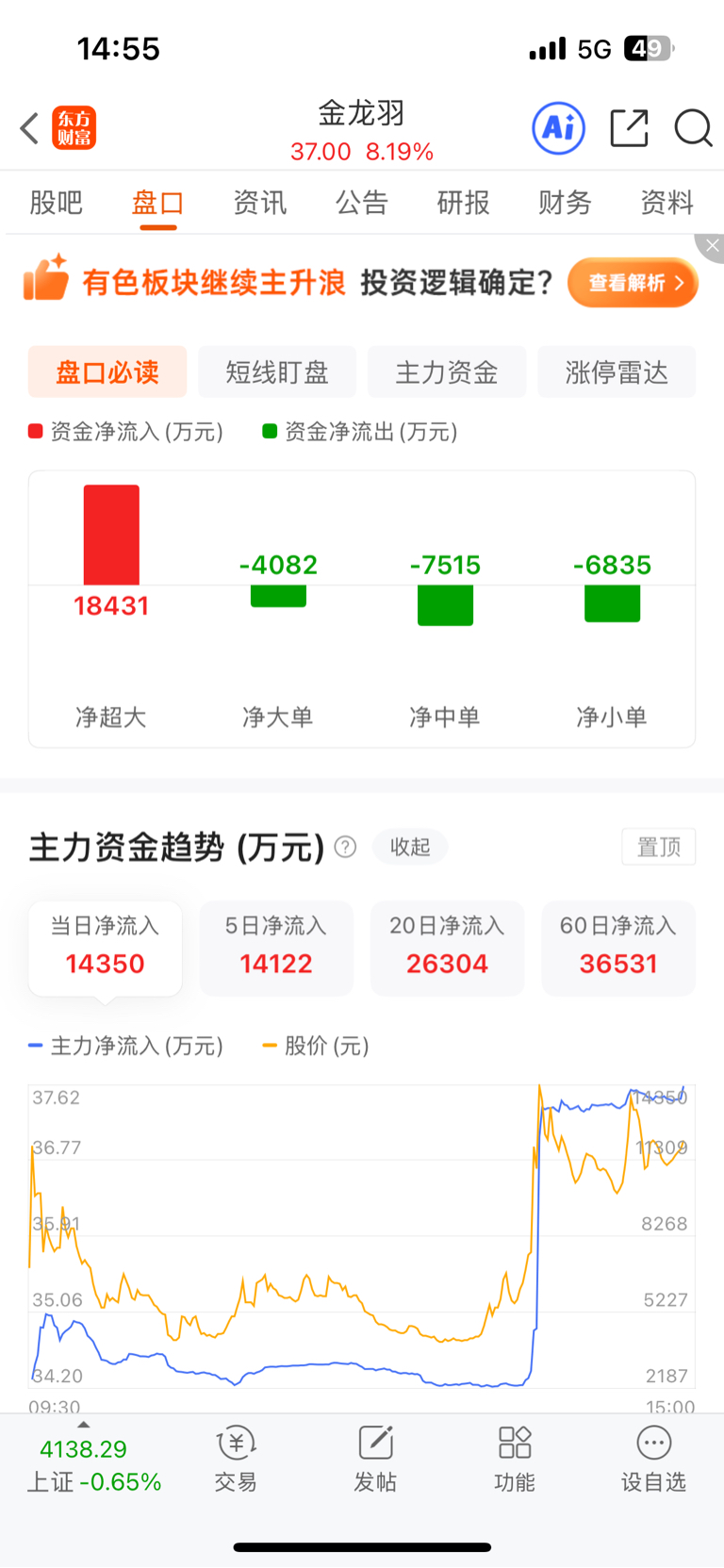 $金龙羽(SZ002882)$ 主力还没走,怕啥,如果今天尾盘封死,明天就可以数板了