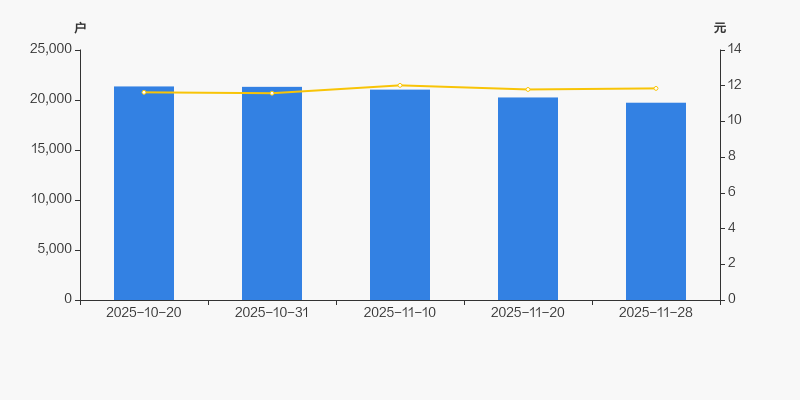 自2025年10月20日以来,公司股东户数连续4期下降,截至目前减幅为7.63%。2025年10月20日至2025年11月28日区间股价上涨1.89%。