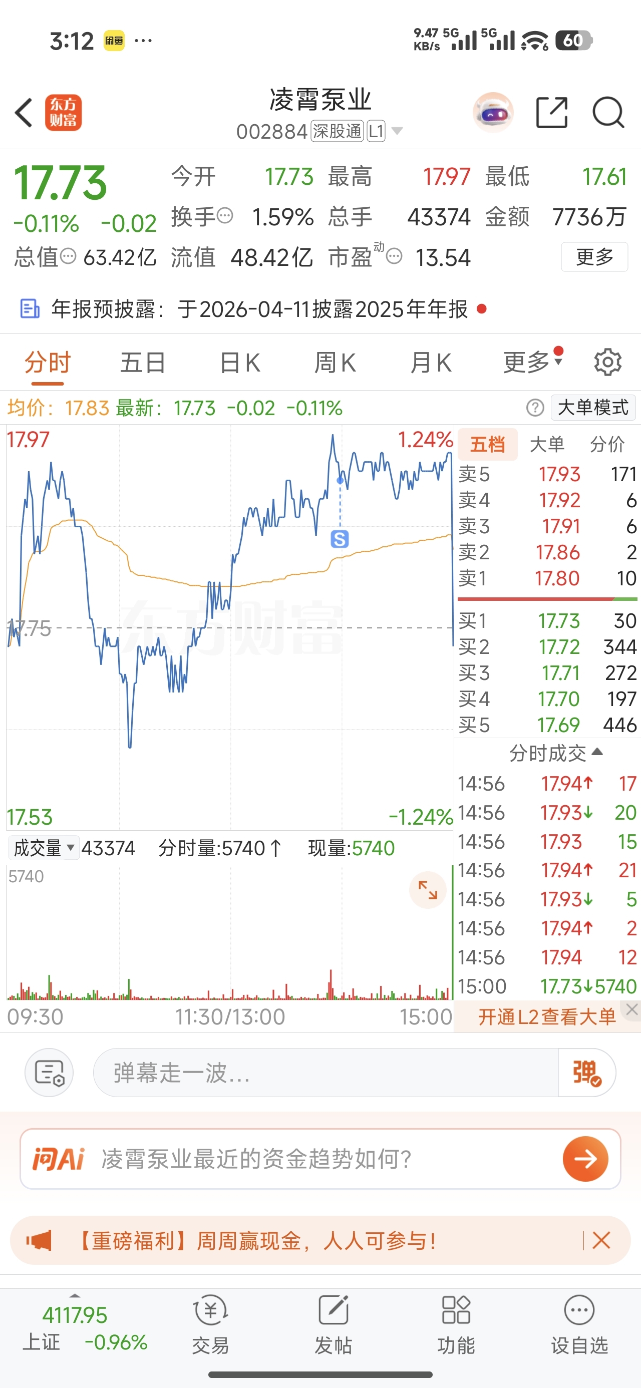 $凌霄泵业(SZ002884)$ 啥情况,我还以为卖飞了